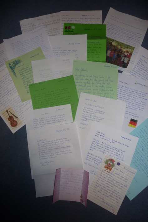 - Zahlreiche Klassen betreuen Patenkinder an der Schule in Malekhu. Für diese spenden sie Geld von ihrem Taschengeld oder verkaufen Selbstgebackenes, Gebasteltes usw. Besonders aufregend ist es für die Schüler jedes Mal, wenn sie die oft sehr persönlich und mit Bildern versehene Post oder Mails aus Nepal erhalten oder selbst Briefe an ihr Patenkind schreiben. Eine besondere Herausforderung stellt dabei die englische Sprache dar, die den deutschen Schülern offensichtlich nicht so leicht aus der Feder geht wie den nepalischen Partnern.