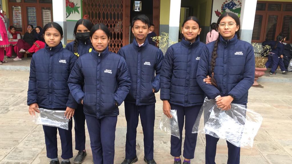 Am 5. Januar wurden dicke Jacken an die Patenkinder verteilt. Während der extremen Kälte in Malekhu freuten sich die Schüler über warme Jacken. Nach der Vision von Prof. Bishal Upreti fertigten Schneider aus Kathmandu leichte Daunenjacken für die Patenkinder an.