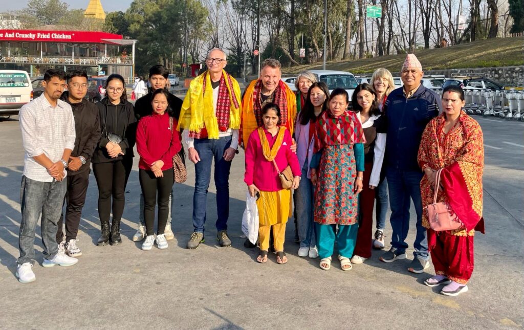 Empfang in Malekhu- ganz großes Kino! Gegen 10 Uhr trafen wir dann ausgeruht in Malekhu ein, kompetent von unserem lieben Freund Shyam begleitet. Sein exzellentes Deutsch und seine Fürsorge ließen weder während der Arbeitswoche in Malekhu noch auf unserem anschließenden Rundtrip in Nepal keinen Gedanken an Heimweh zu.
