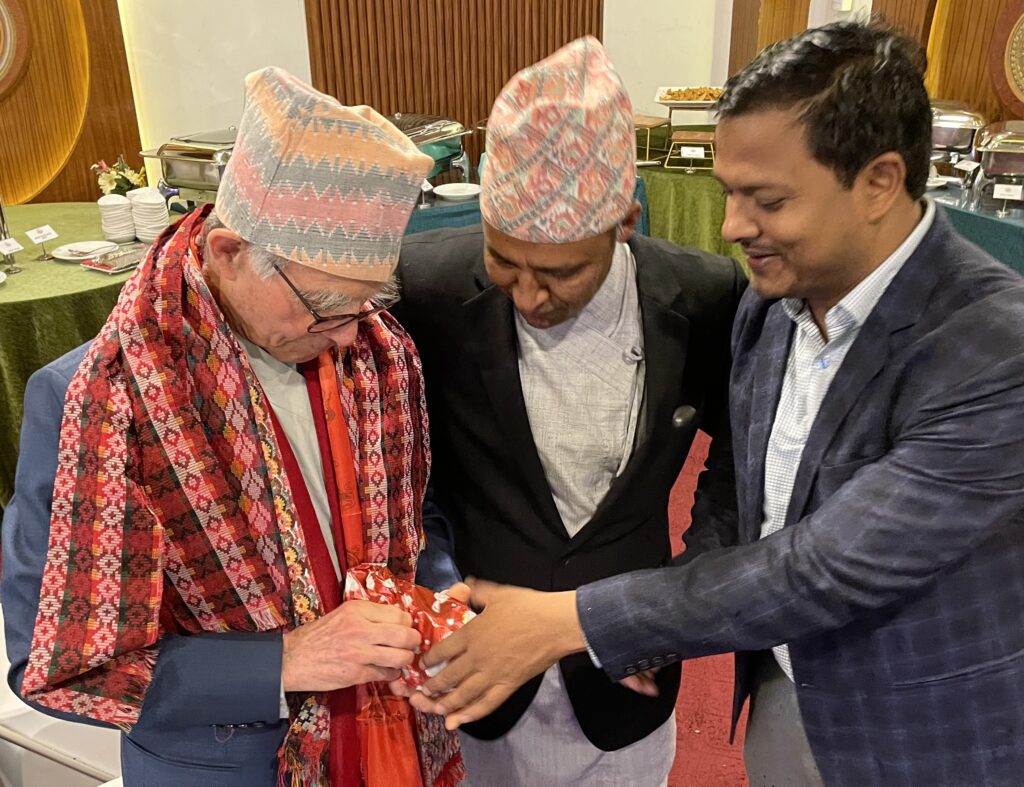 So fanden sich nach und nach gut fünfzig Personen im festlich geschmückten Saal des „German Homes“ in Bhaktapur ein, um ihrem „Doctor Hans“ die Aufwartung zu machen.