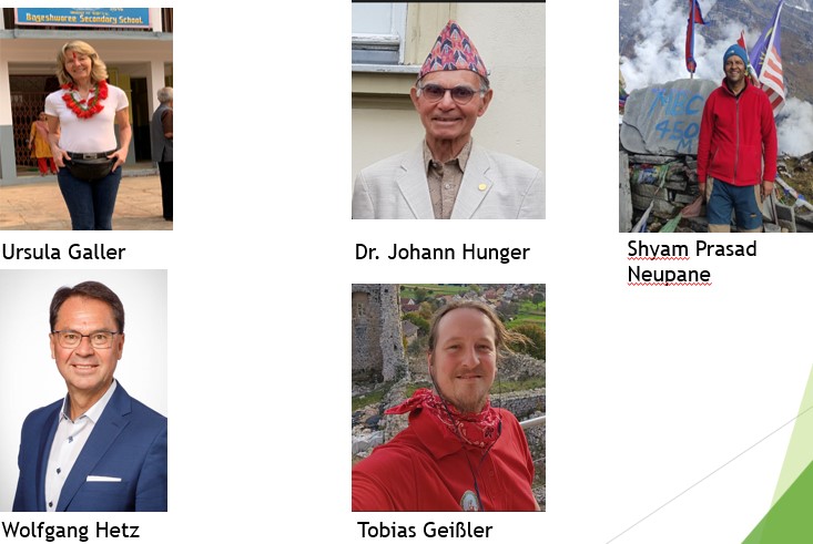 Der bisher amtierende Vorsitzende Dr. Johann Hunger, der die Nepalhilfe 2002 gemeinsam mit Peter Pöhlmann und Sonja Promeuschel aus der Taufe gehoben hatte, gab seinen Vorsitz aus Altersgründen ab. Wird aber dem Verein weiterhin als Beiratsmitglied für das Aufgabengebiet Gesundheitsbeauftragter zur Verfügung stehen.