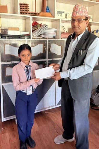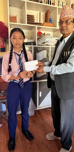 Class 5 Sushmita Tamang, Class 5 Rina Pariyar, Class 6 Dipsan Silwal